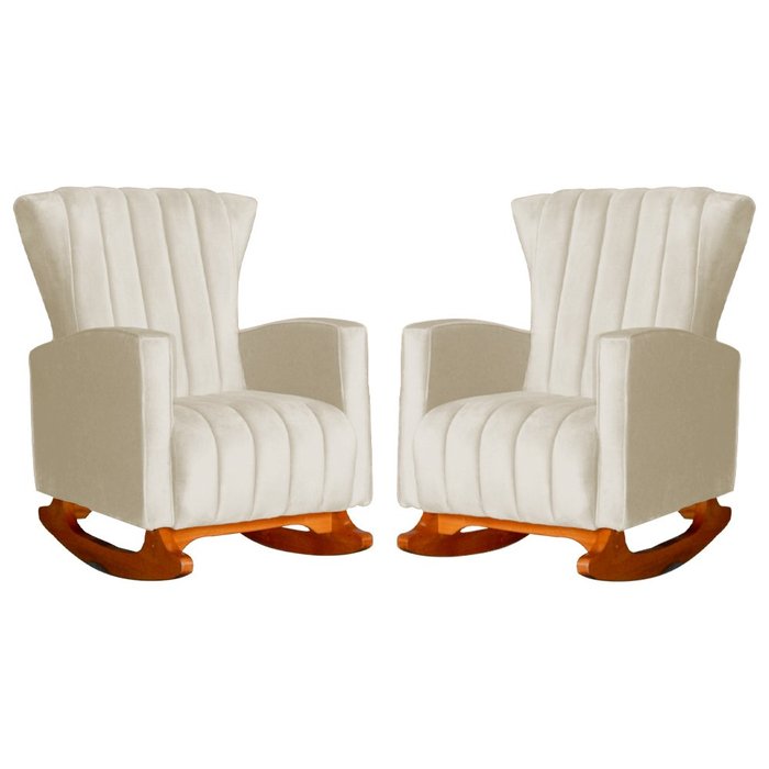 Conjunto 2 Poltronas Estofadas de Balanço Melinda Veludo Bege - DL DECOR