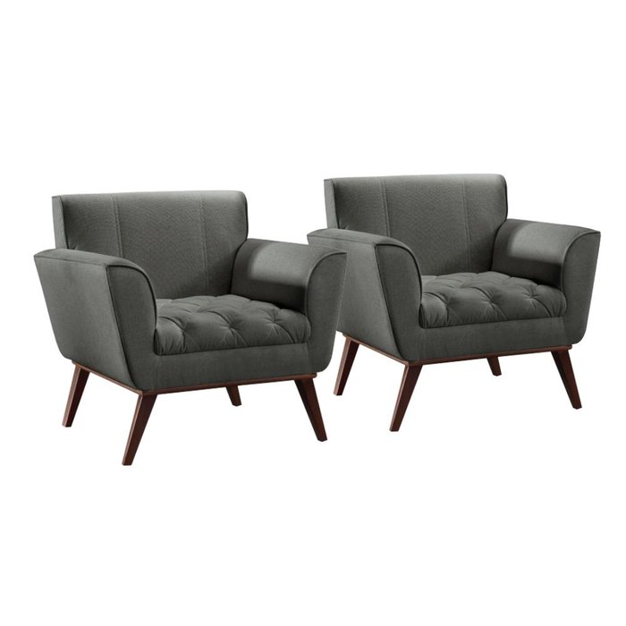 Conjunto - 2 Poltronas Lyz Linho Cinza Cinza