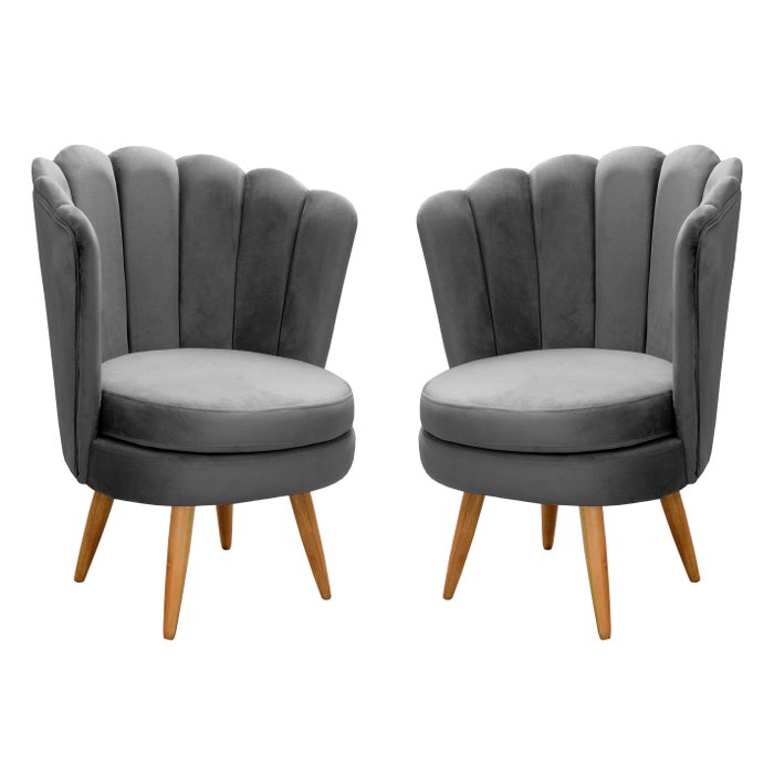 Conjunto 2 Poltronas Pétala Cadeiras Decorativas Flor Cinza grafite