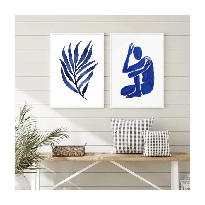Conjunto 2 Quadros Azul Marinho Abstrato Folha homem 24x18cm:madeira Preta Azul Marinho
