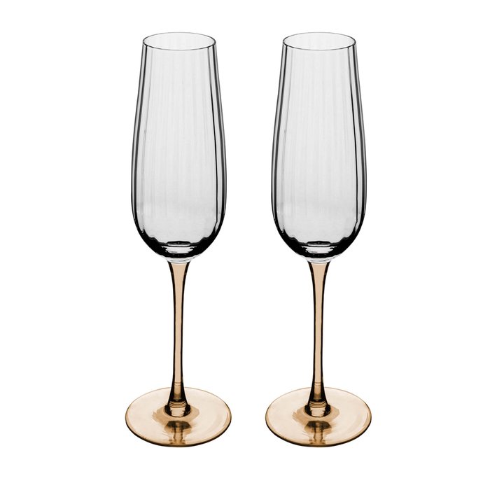 Conjunto 2 Taças de Champanhe de Vidro com Haste Âmbar Classic 230ml - Wolff Âmbar