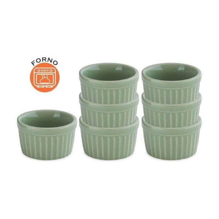 Conjunto 24 Ramequim 90ml Porcelana Verde Claro Canelado 7cm