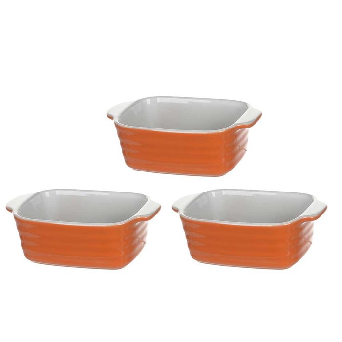 Conjunto 3 Assadeiras Refratário Em Cerâmica Com Alça 15,5cm