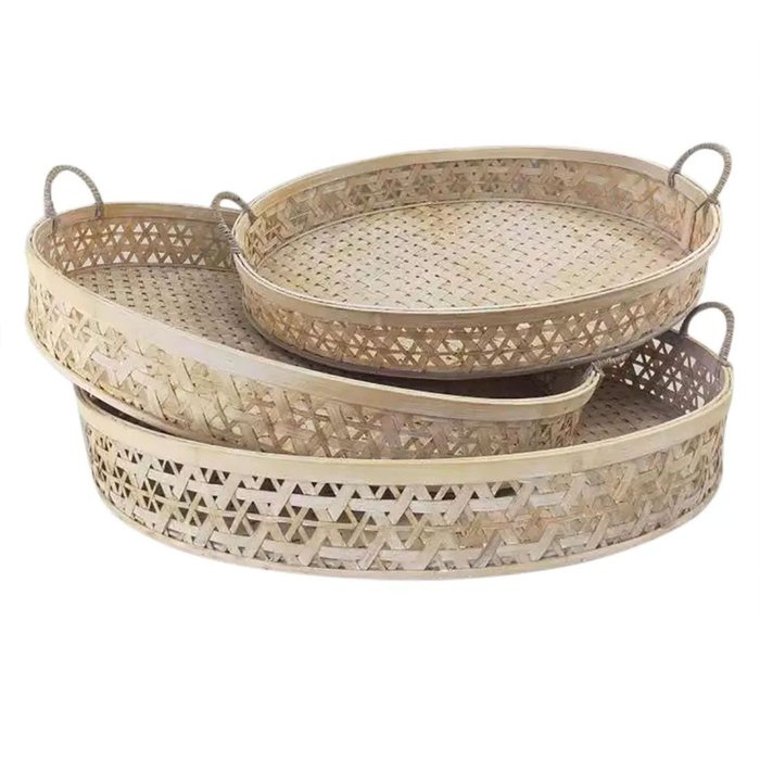 Conjunto 3 Bandejas Decorativas Oval de Bambu
