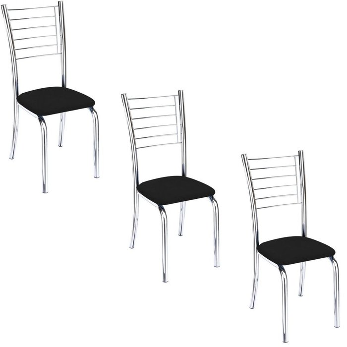 Conjunto 3 Cadeiras cromadas para cozinha Kiara-Corino Preto GAT MAGAZINE Cromado