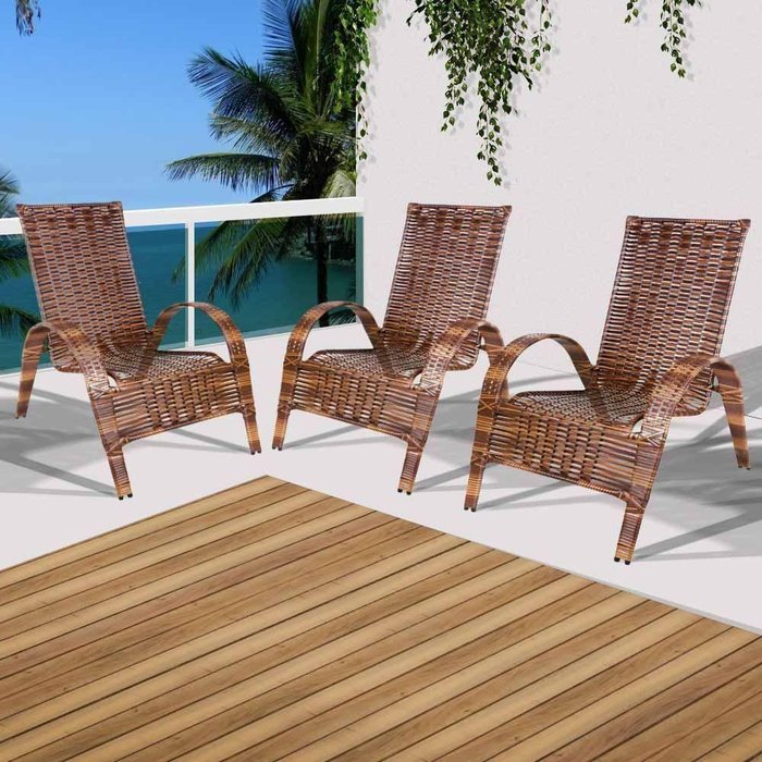 Conjunto 3 Cadeiras de Área Externa Varanda e Jardim em Junco Rei Marrom