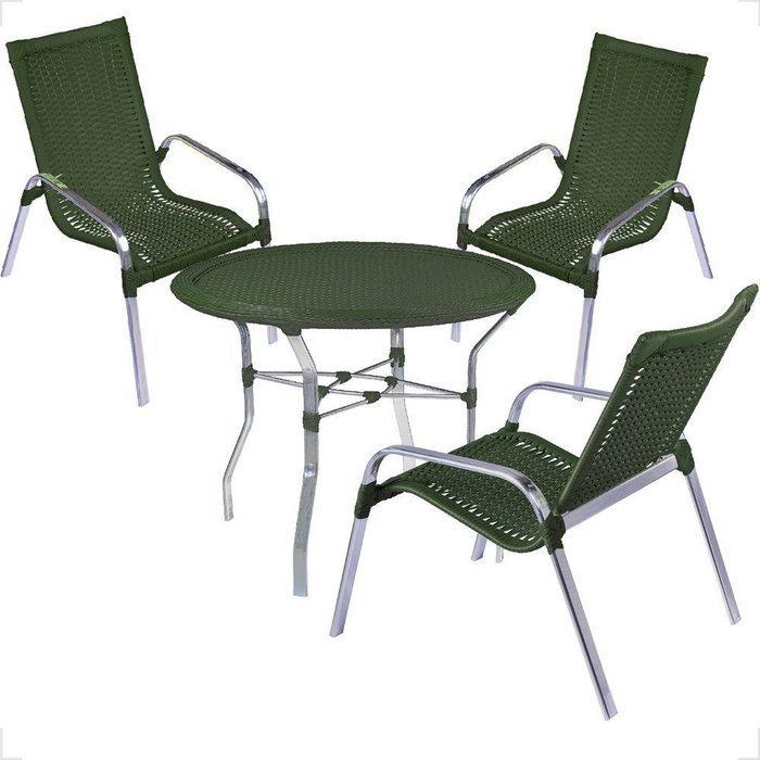 Conjunto 3 Cadeiras E Mesa Alta Alumínio Para área Externa Fortaleza Fibra Sintética Artesanal Cor:verde