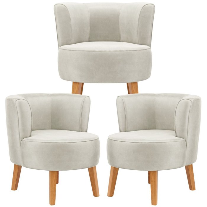 Conjunto 3 Cadeiras Estofada para Sala de Espera Comercial Elegante Reforçado Pés de Madeira Bege