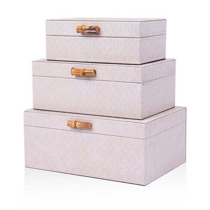 Conjunto 3 Caixas em Madeira Off-white C/ Puxador Bambu Branco