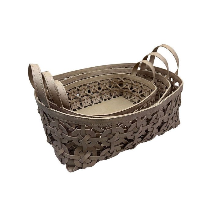 Conjunto 3 Cestos Decorativos Tramados em Couro Sintético Bege Th0111 Btc Bege