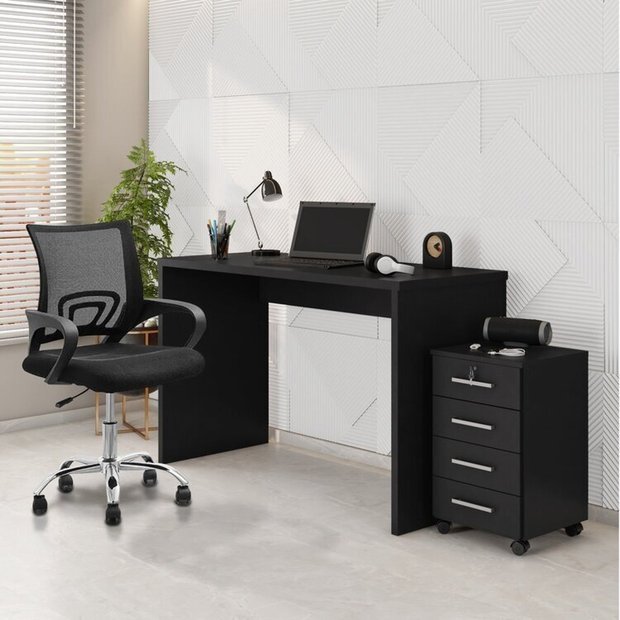 Ver imagem 1 de Conjunto 3 Peças com Cadeira para Escritório, Escrivaninha e Gaveteiro Gávea Espresso Móveis Preto