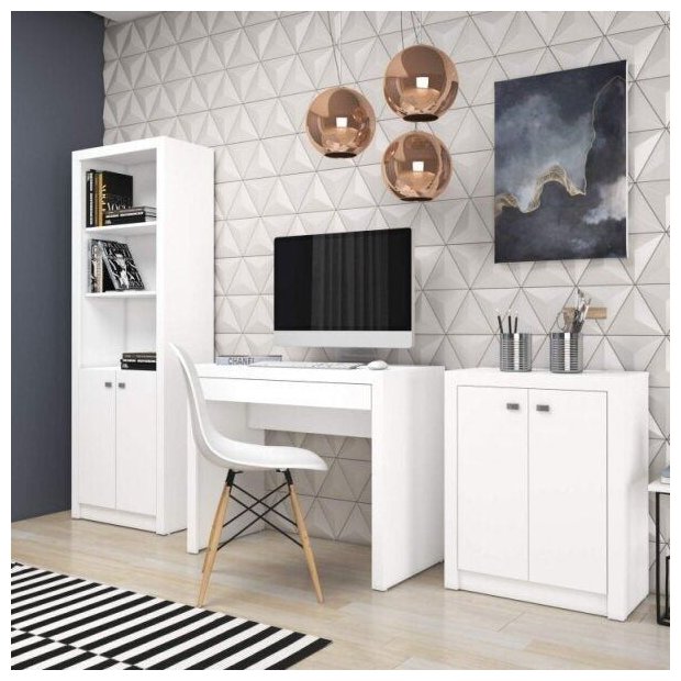 Para quem pensa em praticidade, beleza e funcionalidade, este é o ambiente perfeito. É composto pelos itens necessários para que você possa montar seu escritório, sendo eles: 1 balcão, 1 mesa e 1 estante.