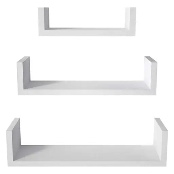 Uma prateleira nicho decorativa do tipo "U" em MDF, com medidas de 70, 60 e 50 centímetros de largura por 15 centímetros de altura, é uma peça versátil que agrega um toque moderno e funcional à decoração de salas e quartos.
