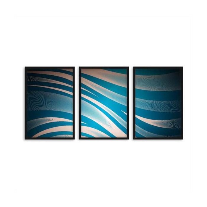 Conjunto 3 Quadros Com Moldura Ondas Linhas Abstratas