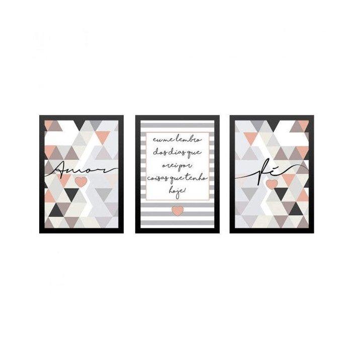 Conjunto 3 Quadros Decorativos Amor e Fé Fundo Abstrato Los Quadros