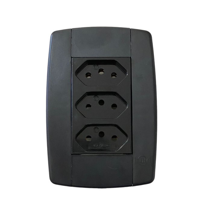| Modelo | Conjunto 3 Tomadas Preta Monobloco 2P+T 10A 250V 4x2 Ilumi Horizontal Elétrica Energia Acender Apagar Luz Liga Desliga Tripla |