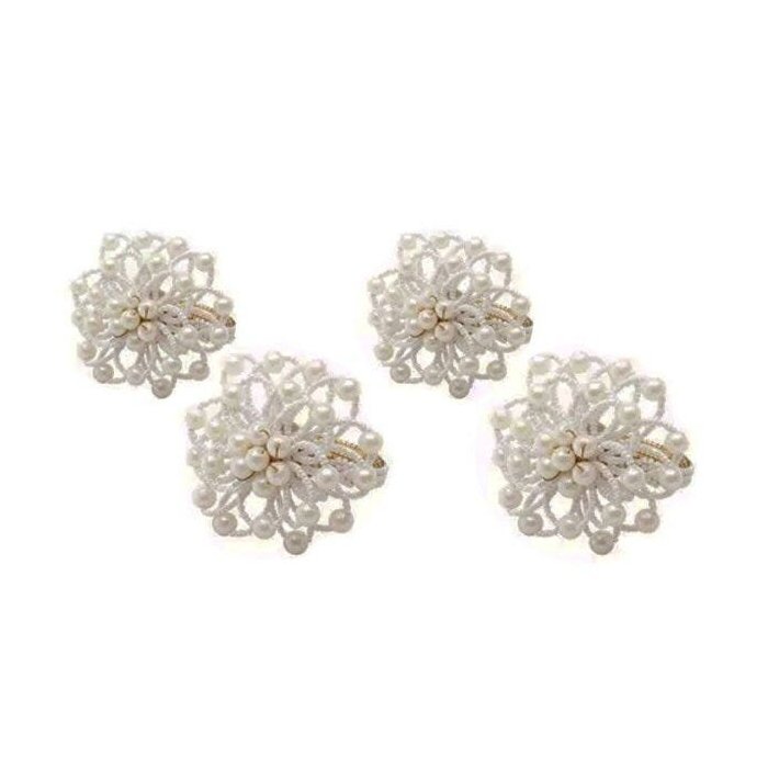 Conjunto 4 Anéis para Guardanapo de Miçangas e Perola Perolado Pearl Rojemac