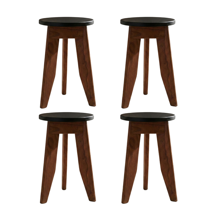 Conjunto 4 Banqueta Baixa em Madeira Maciça Imbuia e Preto 47cm MaderSilva