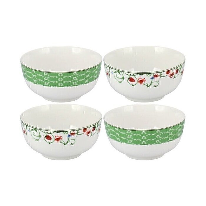 Conjunto 4 Bowl Tigela Cumbuca Cereais Molhos Verde e Branco