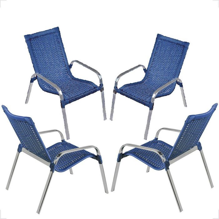 Conjunto 4 Cadeiras Alumínio área Externa Fortaleza Fibra Sintética Artesanal Cor:azul