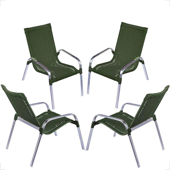 Conjunto 4 Cadeiras Alumínio Área Externa Fortaleza Fibra Sintética Artesanal Cor:verde