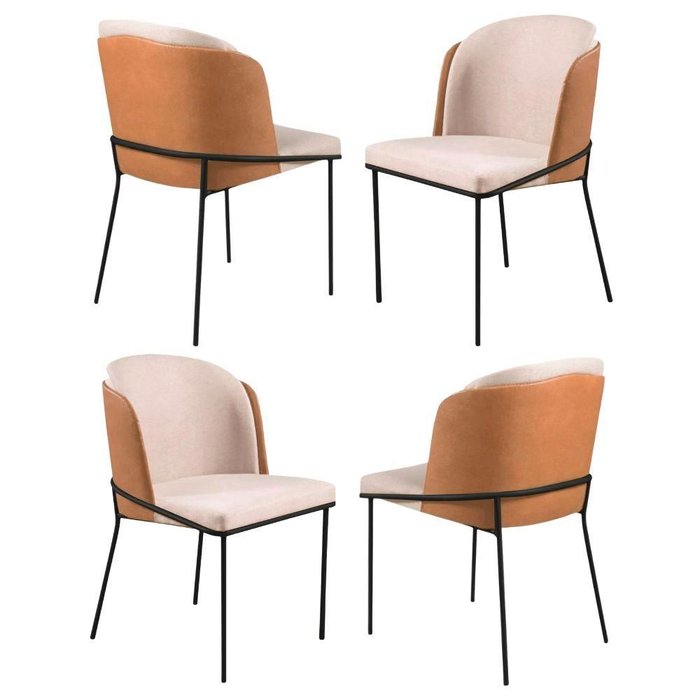 Conjunto 4 Cadeiras Aurora Linho Bege Couro Caramelo Metal Preto Caramelo/Preto