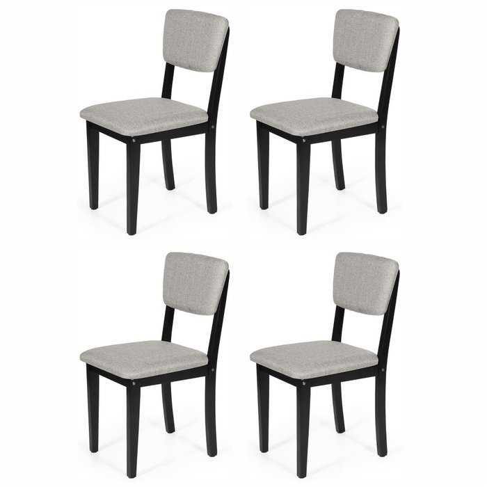 Conjunto 4 Cadeiras de Jantar Estofada em Madeira Maciça Ella Preto/Cinza Claro