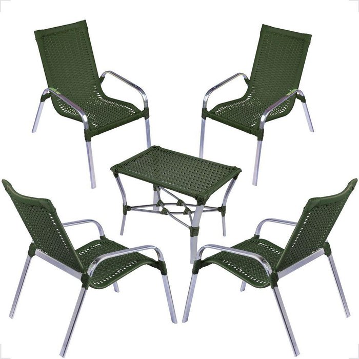 Conjunto 4 Cadeiras e Mesa de Centro Alumínio para Área Externa Fortaleza Artesanal Verde verde