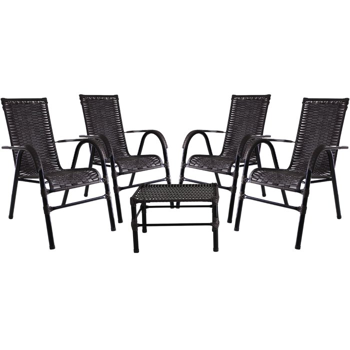Conjunto 4 Cadeiras E Mesa de centro Bela, para área, edícula, fibra sintética - PANERO - TABACO 03