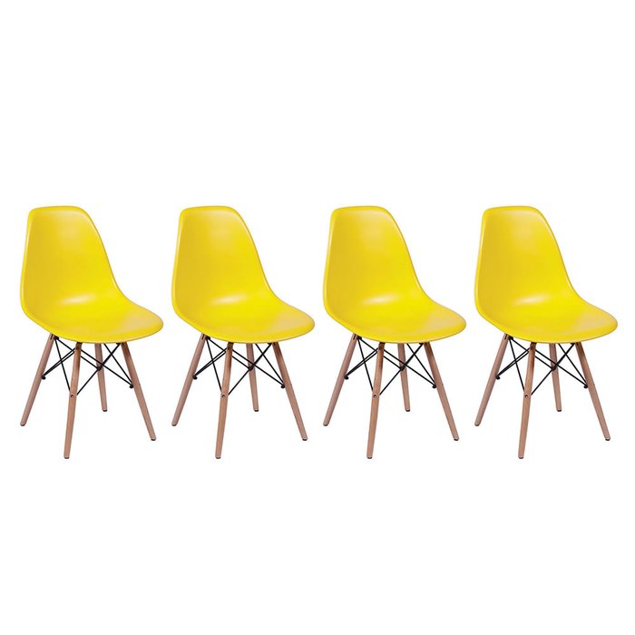 Conjunto 4 Cadeiras Eiffel com Base em Madeira – Amarelo Amarelo