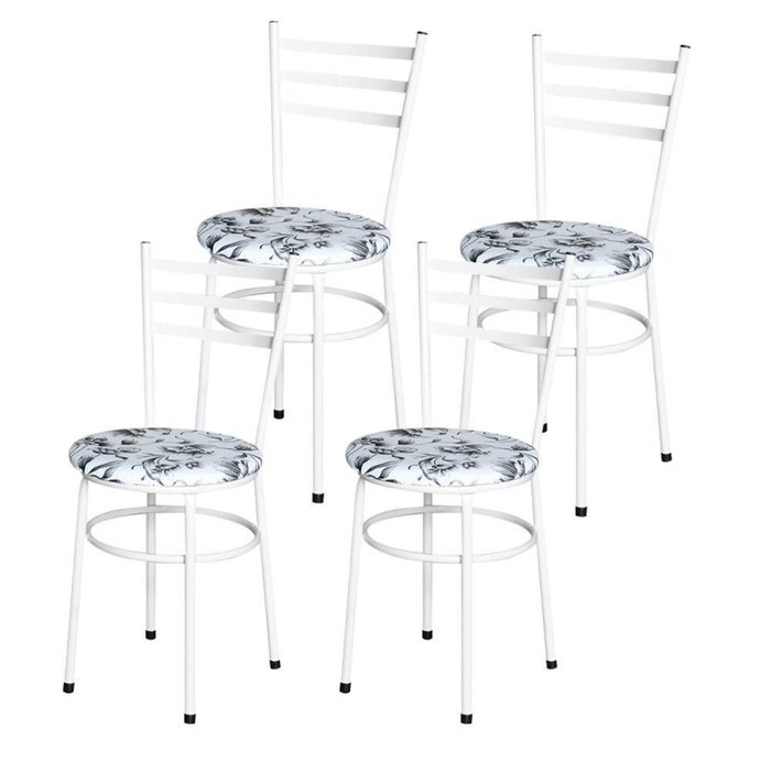 Conjunto 4 Cadeiras Epóxi Branca Para Cozinha Assento Estampado Floral Branco