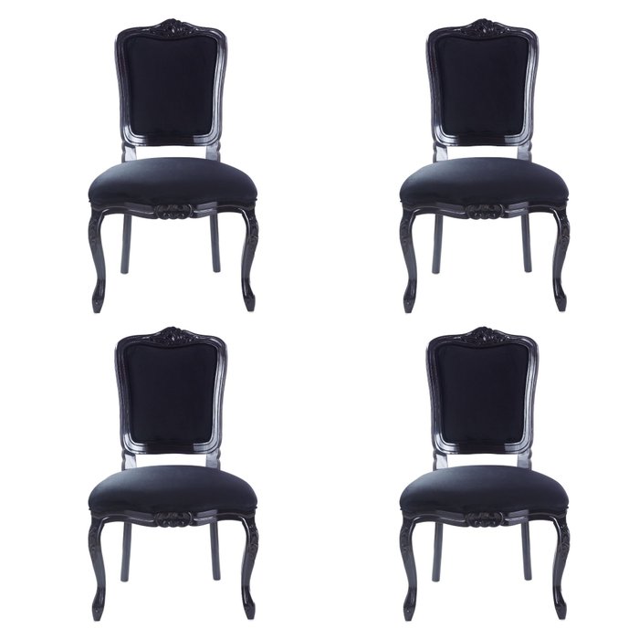 Conjunto 4 Cadeiras Luis Xv de Madeira Cor Preto com Veludo Preto