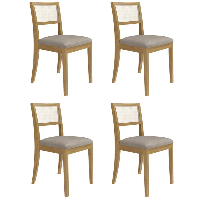 Conjunto 4 Cadeiras Madeira Maciça Ônix Tradição Móveis Naturalíssimo/Cinza