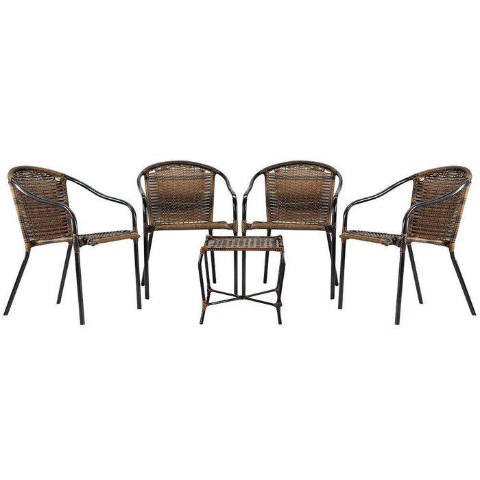 Conjunto 4 Cadeiras + Mesa Em Fibra Sintética Área Externa Marrom