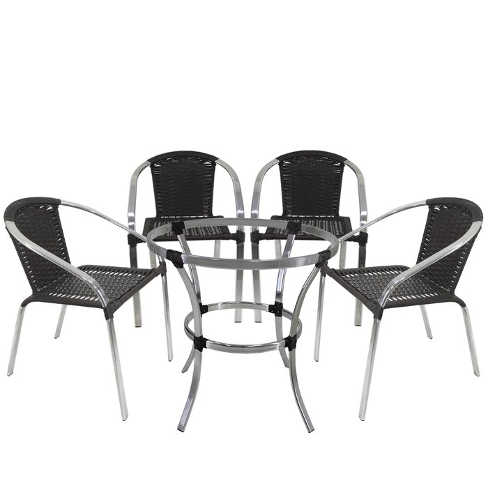 Conjunto 4 Cadeiras para Área Externa em Fibra Sintética com mesa Salinas em Alumínio - Cor Tabaco