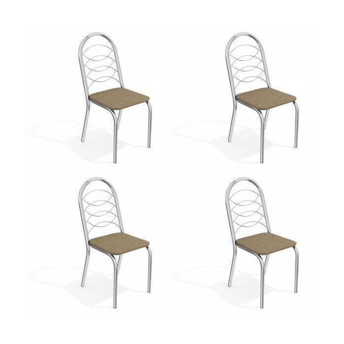 Conjunto 4 Cadeiras para Sala de Jantar Holanda Metal Cromado/Capuccino