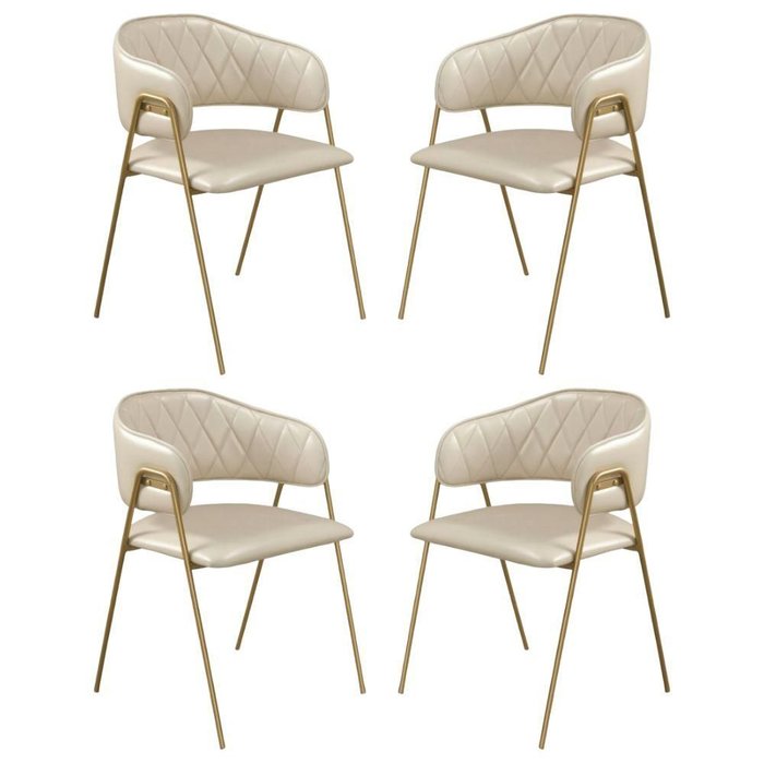 Conjunto 4 Cadeiras Veneza Couro Pérola Metal Dourado