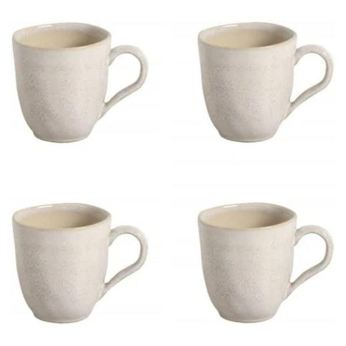 Este jogo com quatro canecas em cerâmica stoneware combina resistência e charme em um design contemporâneo. Com acabamento manual e forma orgânica, cada peça traz um toque único na cor off white, perfeita para compor uma mesa elegante e acolhedora. Com 273ml de capacidade, são ideais para suas bebidas favoritas no dia a dia. Versáteis e funcionais, podem ir ao micro-ondas, lava louças e freezer com total segurança. Um conjunto pensado para quem aprecia beleza, autenticidade e durabilidade em cada detalhe.