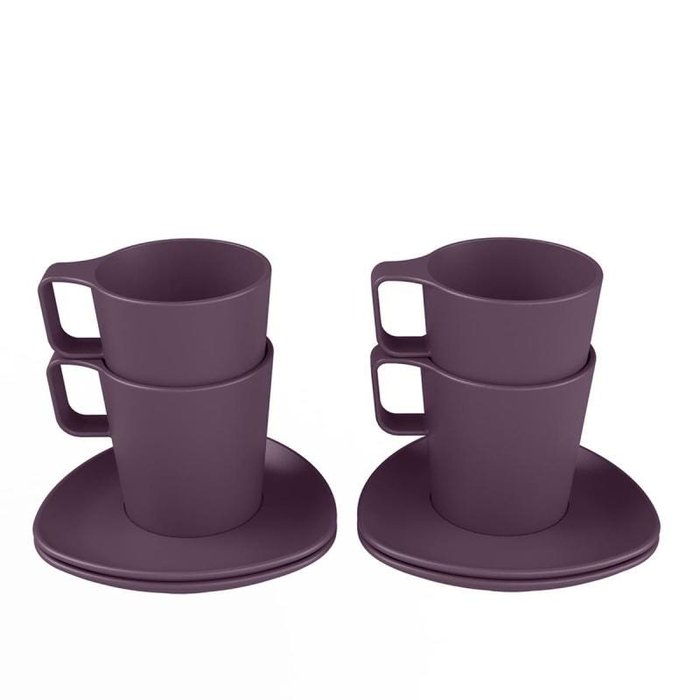 Conjunto 4 Canecas Empilháveis e 4 Pires Roxo Púrpura Coza