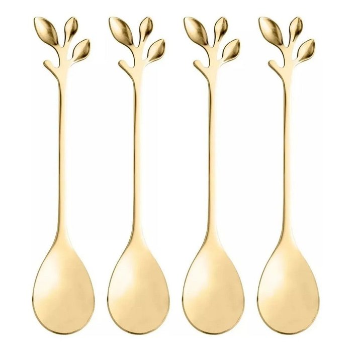 Conjunto 4 Colheres de Chá de Aço Inox Leaves Dourado - Wolff