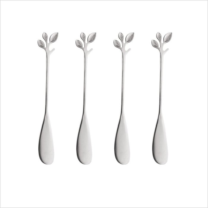 Conjunto 4 Espátulas de Aço Inox Leaves Prata Wolff 28836 Prata