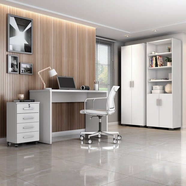 Conjunto de escrivaninha, armários e gaveteiro indicado para uso em sala, escritório, quarto, ou qualquer outro ambiente que você precise organizar e deixá-lo ainda mais elegante.