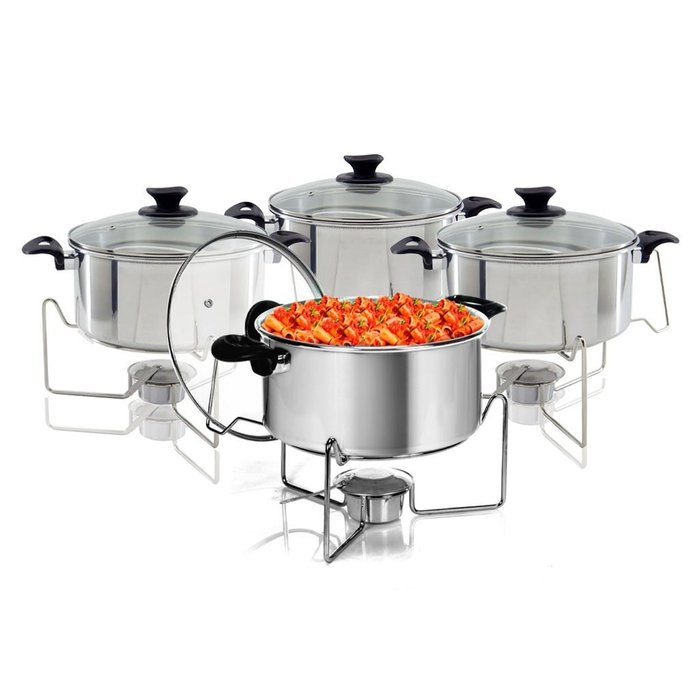 Conjunto 4 Rechaud Fundo Polido Em Alumínio Para Buffet Com Suporte Tampa 5 Litros