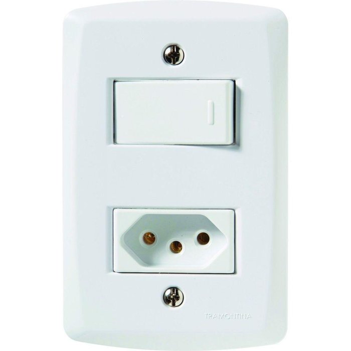 Utilize o Conjunto 4x2 com 1 Interruptor Simples 10 A 250 V e 1 Tomada 2P+T 20 A 250 V Tramontina Lux2 Branco e tenha um item completo para ligar equipamentos elétricos e eletrônicos e ainda acender as luzes do ambiente. Produzido em termoplástico na cor branca com acabamento em brilho, ele vai agregar funcionalidade nos ambientes onde for inserido. Sua instalação é muito simples, pois tem sistema modular onde a placa possui suporte incorporado, além de acompanhar parafusos adequados para sua fixação. Com a Tramontina, você tem as melhores escolhas para sua casa!Orientações.ObservaçõesA instalação e segurança: É importante que o produto seja instalado por profissional habilitado. Antes de instalar, desligue a energia elétrica.Características GeraisEAN137891435054958DUN1417891435054955NCM8536.69.10Peso Líquido0,0800 kg.Peso Bruto0,0880 kg.Metragem0,000600 m³.Dimensões Embalagem (Compr. X Larg. X Alt.)150x 100x 40 mm.Dimensões Produto (Compr. X Larg. X Alt.)122x 79x 42 mm.Cor 1FFFFFF Hexa