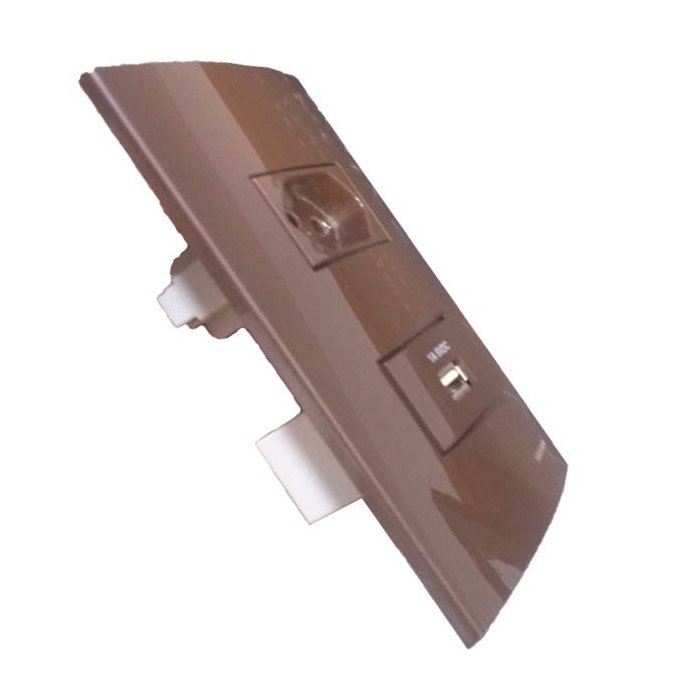 Conjunto 4x2 Linha Marrom Sleek Alto brilho - 1 Tomada 2P+T 10 A + tomada USB 1A separadas