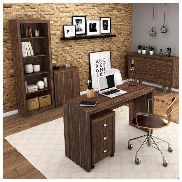 Ver mais imagens de Conjunto 5 Peças com Escrivaninha, Gaveteiro, Armário Multiuso Baixo, Estante e Balcão Nogal