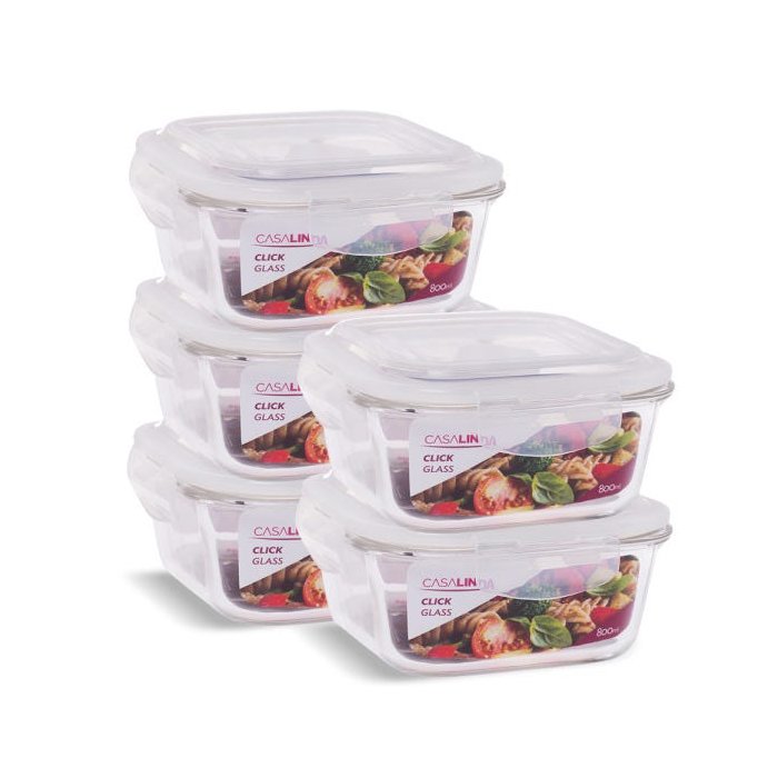 Conjunto 5 Pote Vidro Hermético Marmita Tampa Plástico 800ml