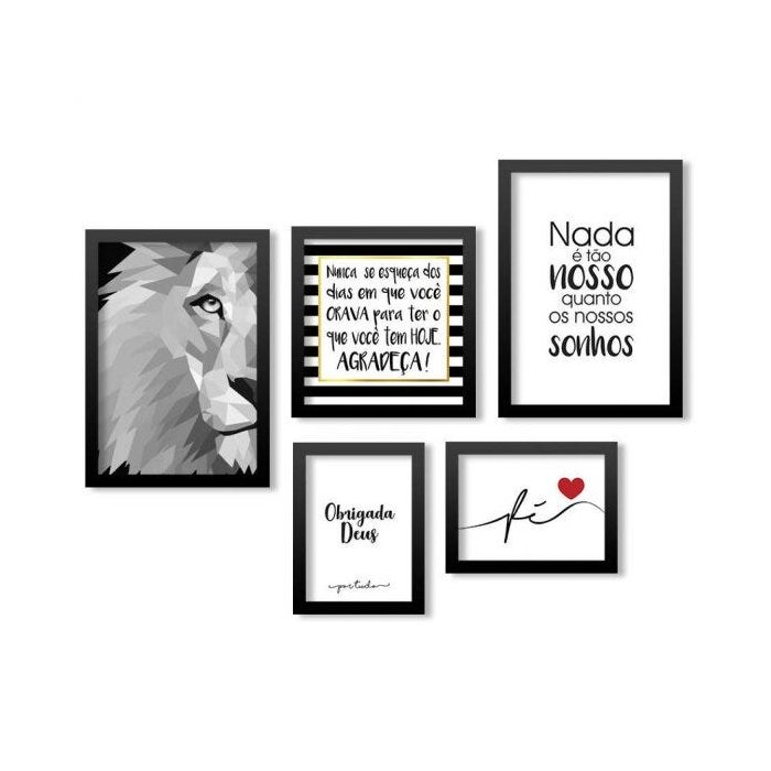 Conjunto 5 Quadros Decorativos Leão e Frases Los Quadros