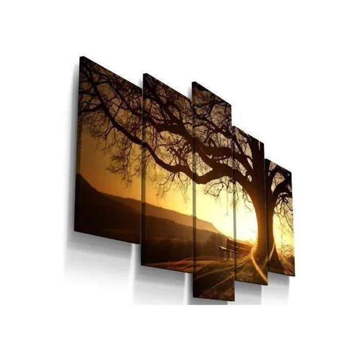Conjunto 5 Quadros Paisagem Arvore Entardecer Sala Quarto