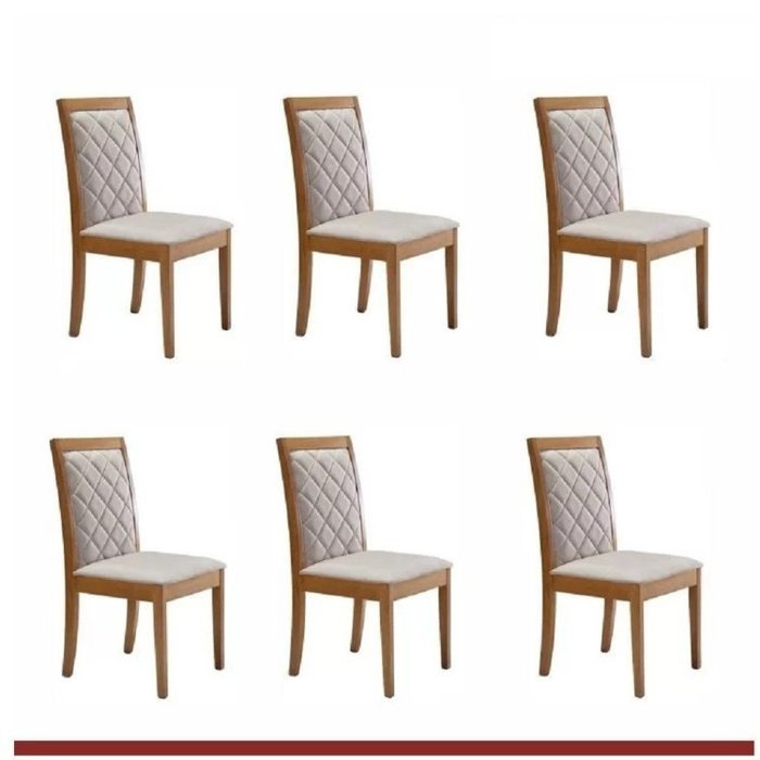Conjunto 6 Cadeiras em Madeira Maciça Estofadas Berlim Espresso Móveis Cinamomo/Suede Bege